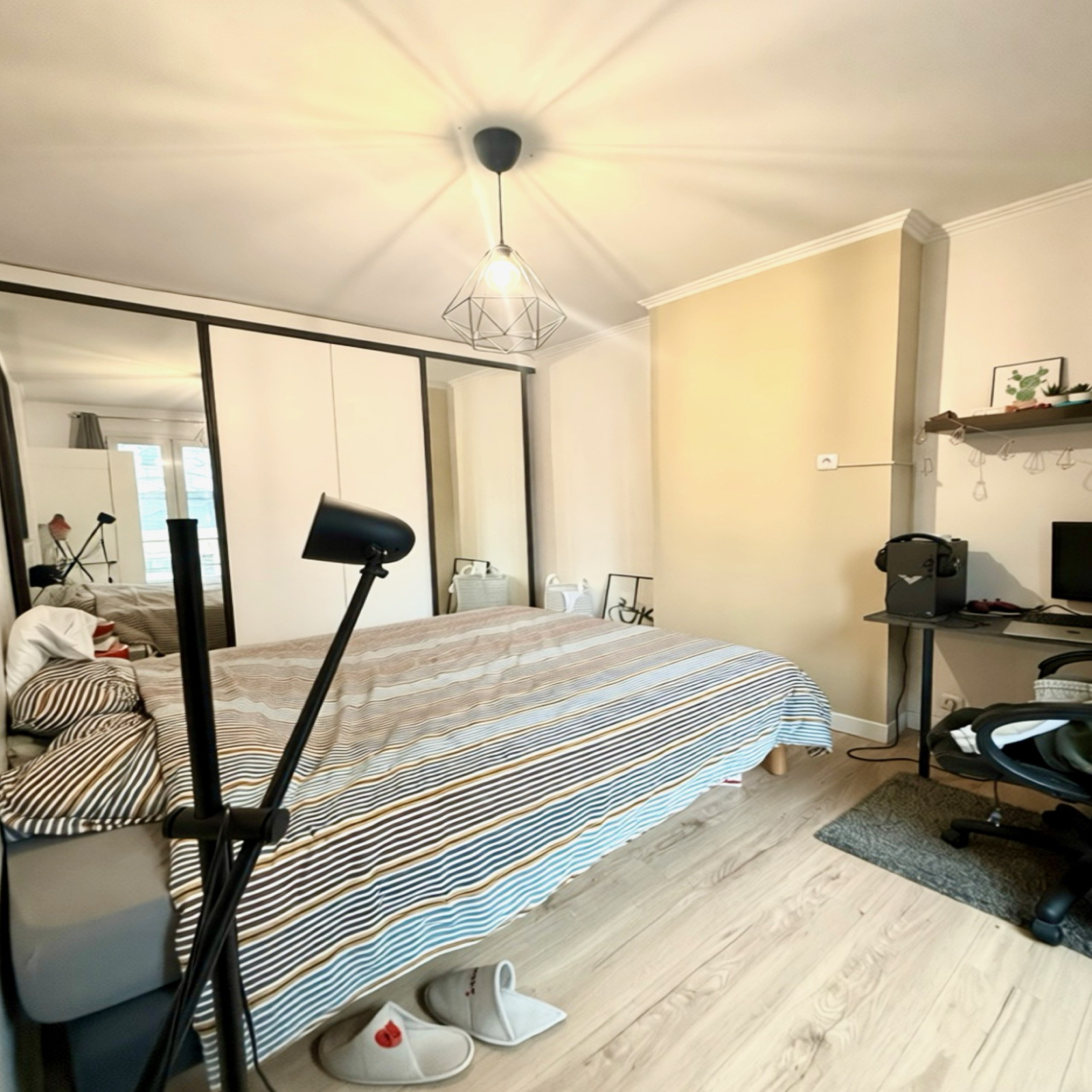 La chambre avec placard intégré allie confort et fonctionnalité, tandis que la salle d’eau avec wc complète parfaitement cet ensemble pratique et élégant.